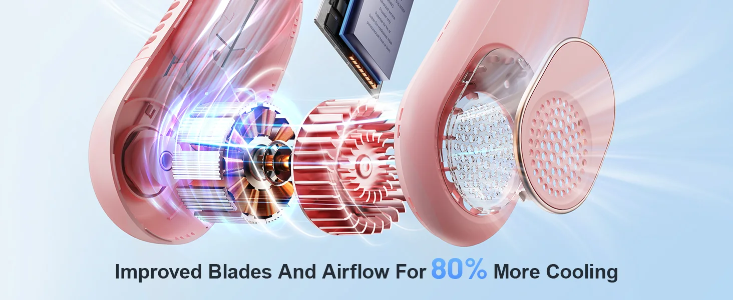 يضمن التصميم الخالي من الشفرات تجربة آمنة ومريحة، ويمنع تشابك الشعر مع توفير تبريد بزاوية 360 درجة، مما يجعله مثالياً للاسترخاء والاستخدام النشط.
